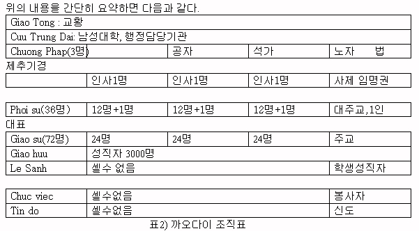 Âê¾û ÆË ¾Æ·¡´Â 36¸í(°¢ Á¾±³ºÎ¼¸¶´Ù 12¸í)ÀÇ Æ÷ÀÌ ½º(Phoi su : ´ëÁÖ±³)¿Í ´ëÇ¥ 1ÀÎÀÌ ÀÖ°í Æ÷ÀÌ ½º¸¦ °ü¸®ÇÏ¿¡´Â ÀÚ¿À ½º(Giao su : ÁÖ±³) 72¸í(°¢ Á¾±³ºÎ¼¸¶´Ù 24¸í¾¿)ÀÌ ÀÖ´Ù. ±×¸®°í ±× ¾Æ·¡ ÀÚ¿À Èå¿ì(Giao huu), ·¹ ½Å(le sinh), ©P ºñ¿¢(chuc viec)°ú ¶í µµ(Tin do)·Î ±¸¼ºµÇ¾î ÀÖ´Ù