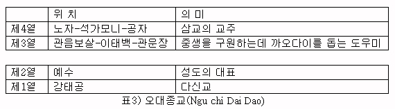 ±î¿À´ÙÀÌ´Â À¯ÀÏÇϽŠÇϳª´ÔÀ» ¼¶±â´Â °ÍÀÌ ¾Æ´Ï¶ó Á¾±³¸¦ ÅëÇÕÇϰڴٴ »ç»ó¿¡¼ Ãâ¹ßÇÑ °ÍÀ̹ǷΠȥÇÕÁ¾±³ÀÇ »ç»óÀÌ °¡µæ µé¾î Â÷ÀÖ´Ù. °Ô´Ù°¡ ±×µéÀÌ ¸»ÇÏ´Â Con Maet Toai Cao(Áö°íÀÇ ´«;Á¦3ÀÇ ´«)Àº ´º¿¡ÀÌÁö »ç»óÀÇ ÇÙ½É »ó¡¹°ÀÌ´Ù.